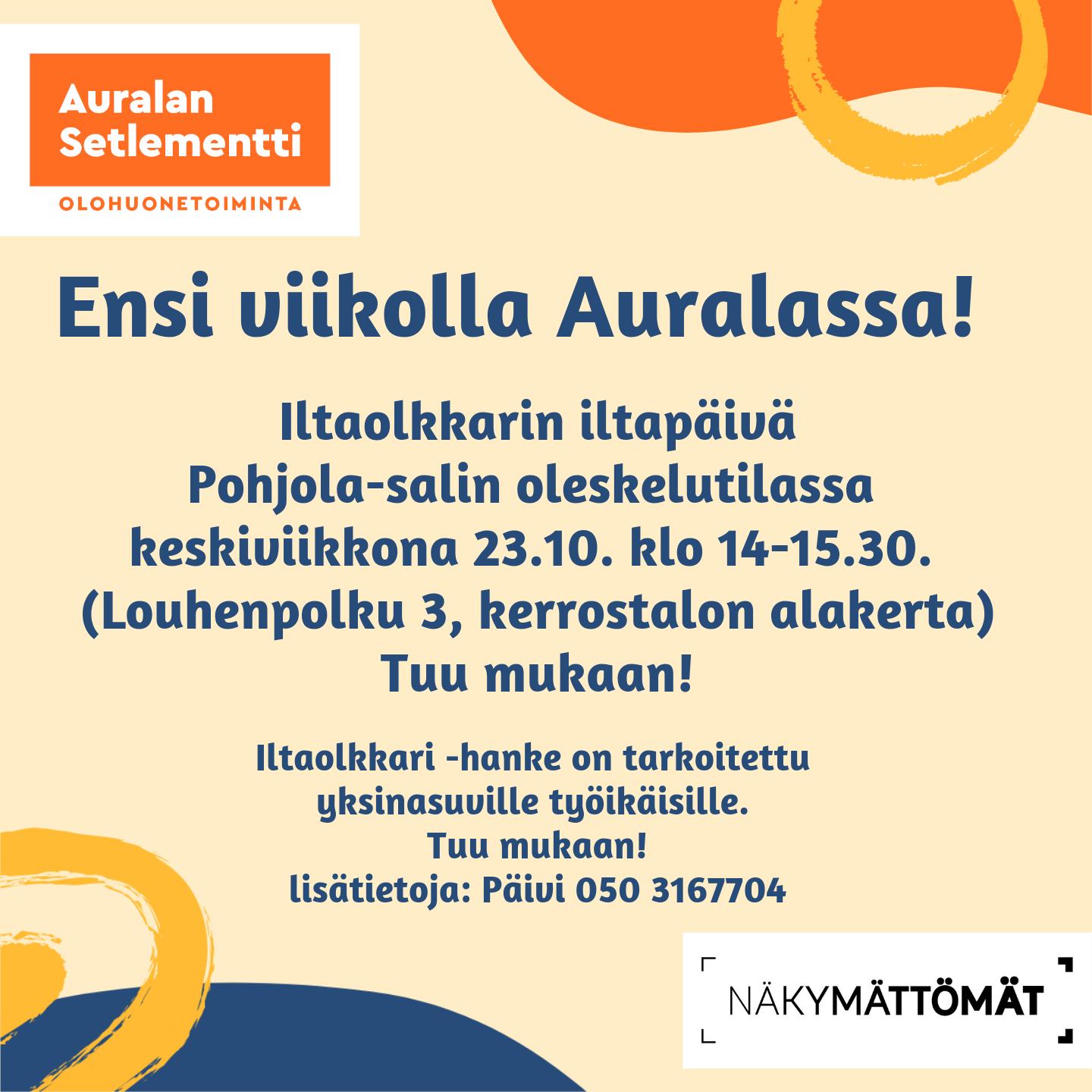 Tule mukaan iltaolkkaritoimintaan! Osallistuminen on maksutonta ja kaikille yksinasuville työikäisille avointa. Iltaolkkari yksinasuville pidetään keskiviikkona 23.10 klo 14-15.30 Pohjola-salissa, ja jatkossa ke 6.11. 13.11., 27.11., 4.12. ja 11.12. klo 14-15.30.